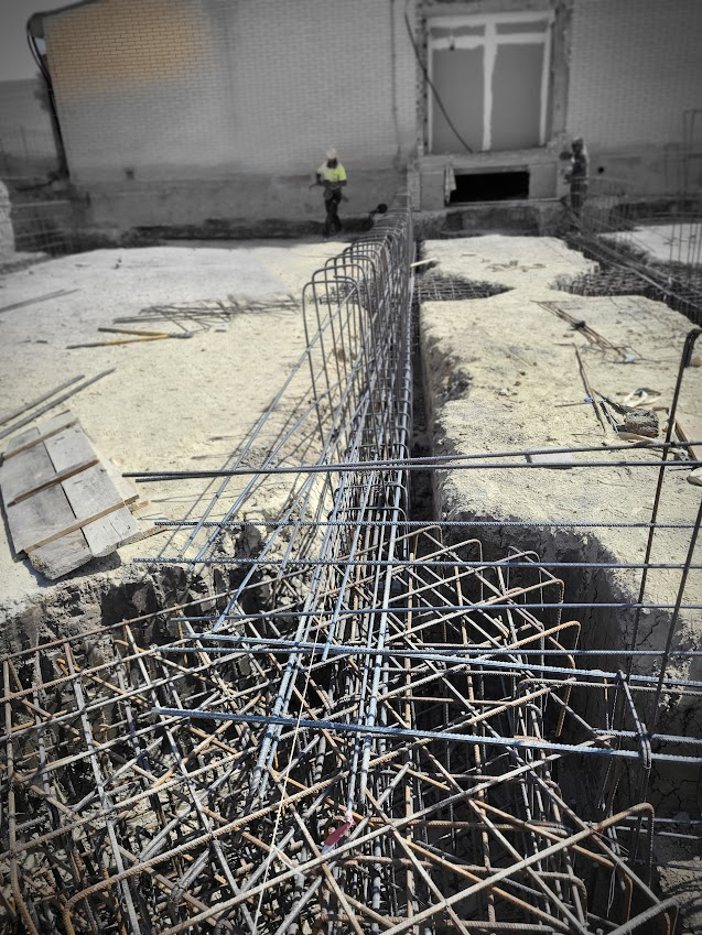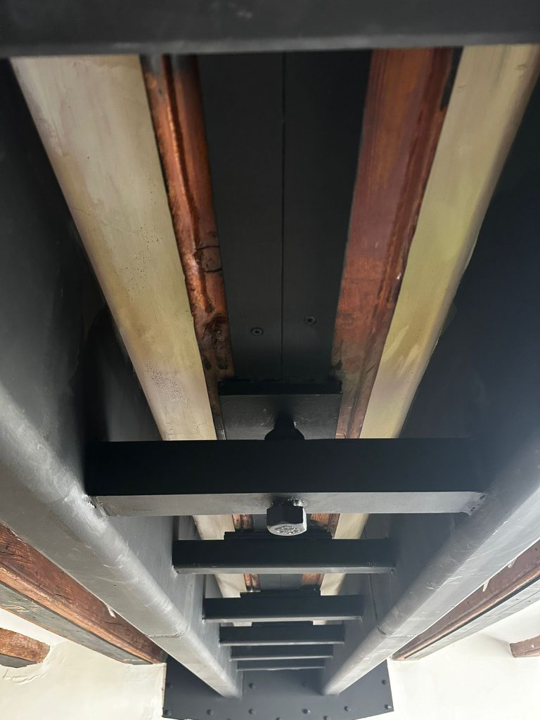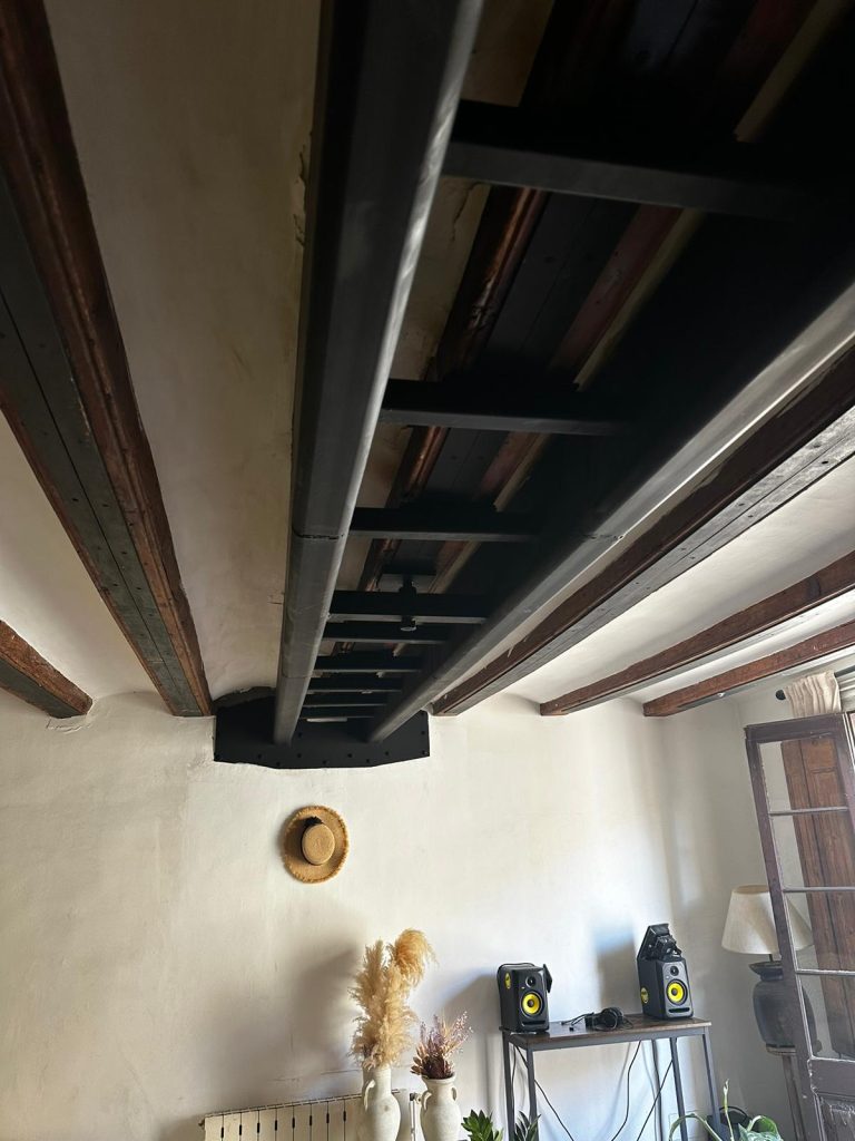 La obra consistía en reforzar dicha viga, a través de 2 jácenas metálicas unidas entre si por pasadores en acero, que