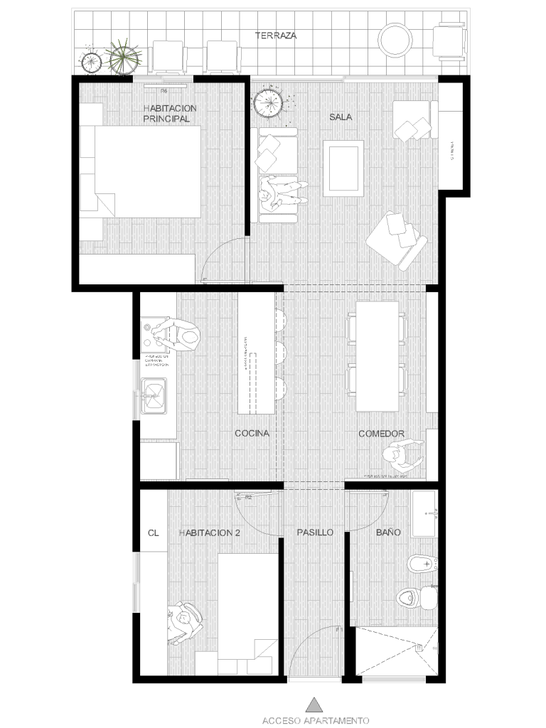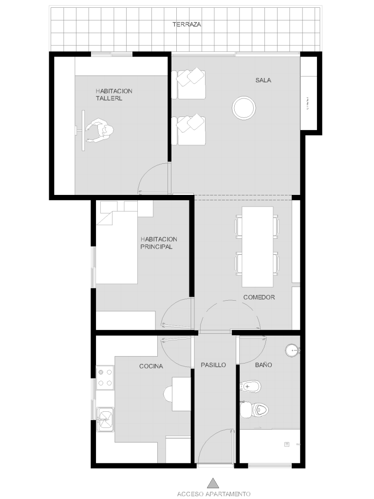La cocina, que se encontraba en un espacio cerrado, se decide cambiar de lugar y abrirse completamente al área sala –