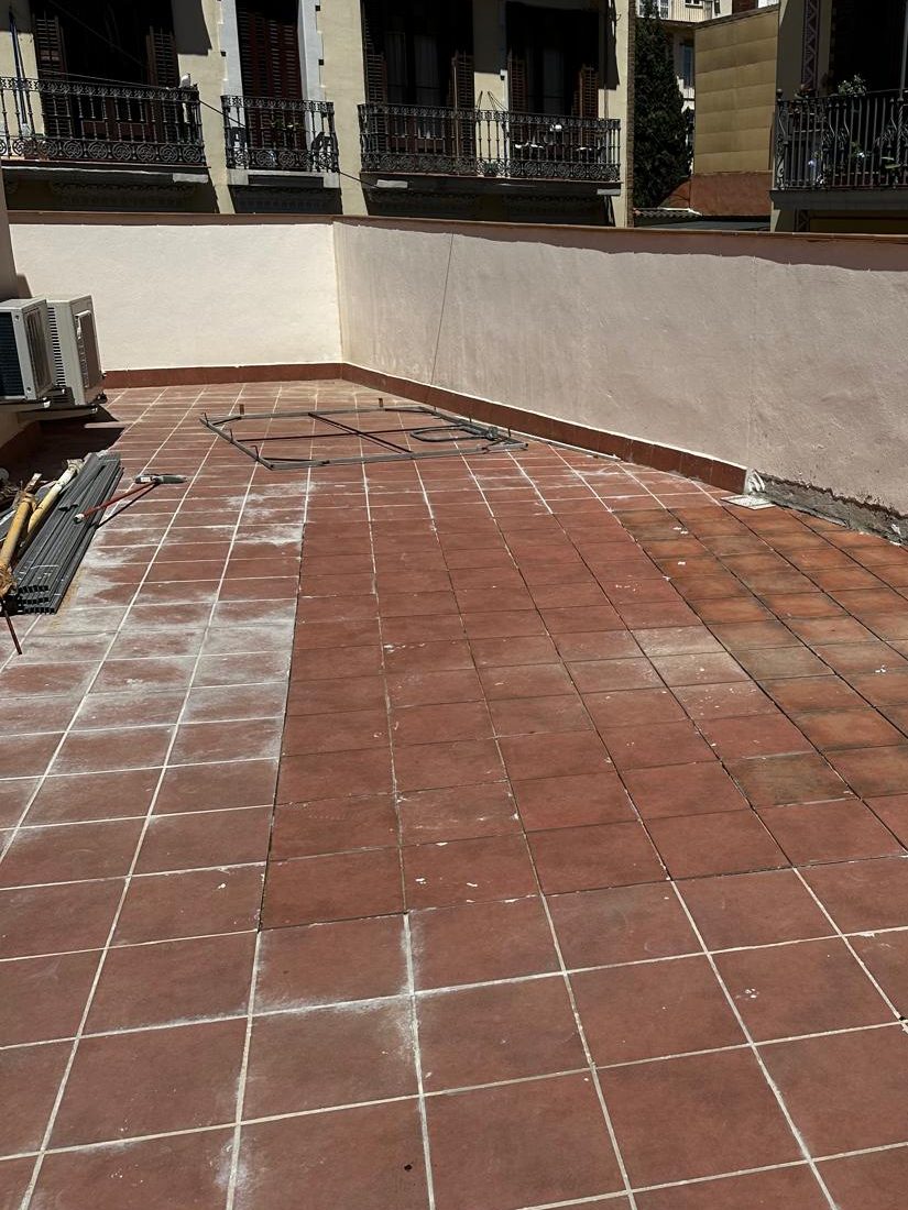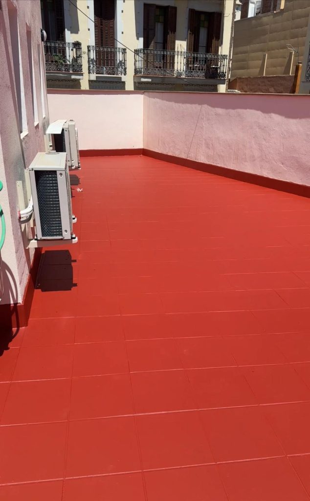Repicado de borada y preparación de superficie para nuevo rejunte + pintura fibrada, impermeabilizante para cubiertas.